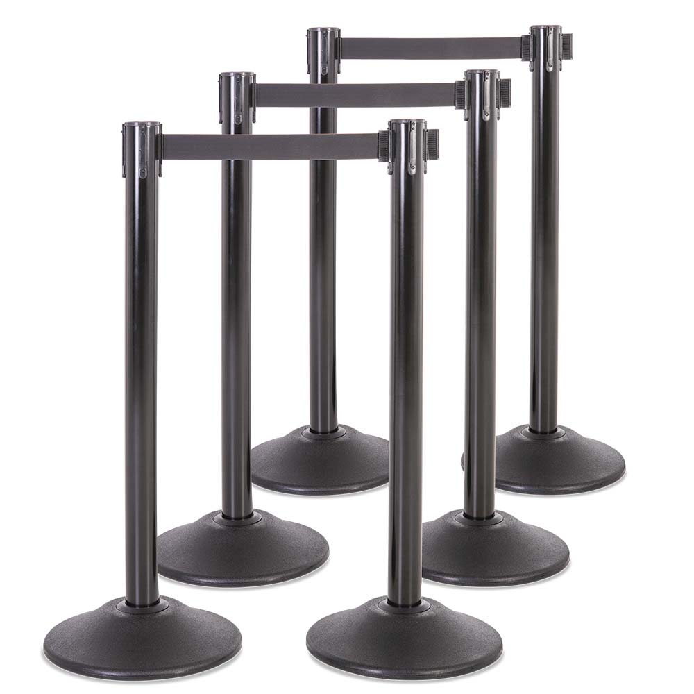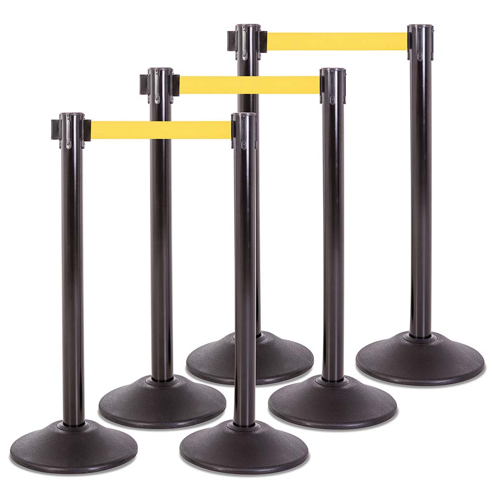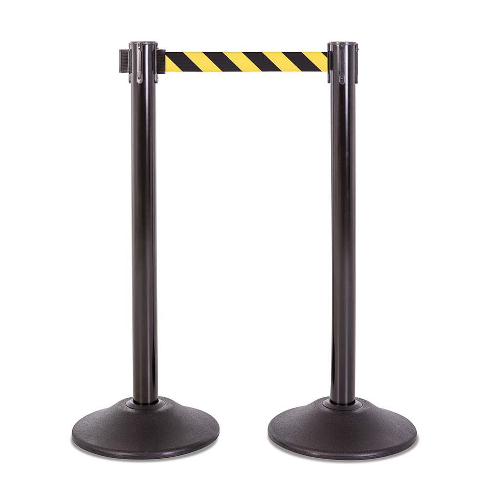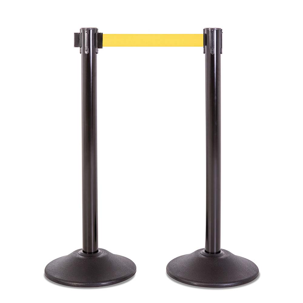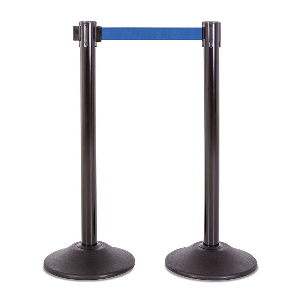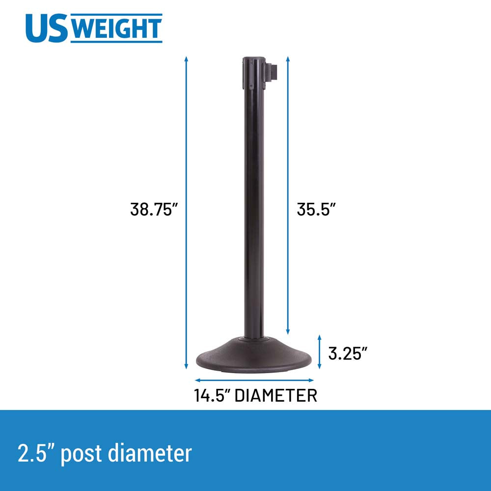 US Weight Premium Black Steel Stanchion with 7.5' Foot Retractable Belt - Multiple Color Options