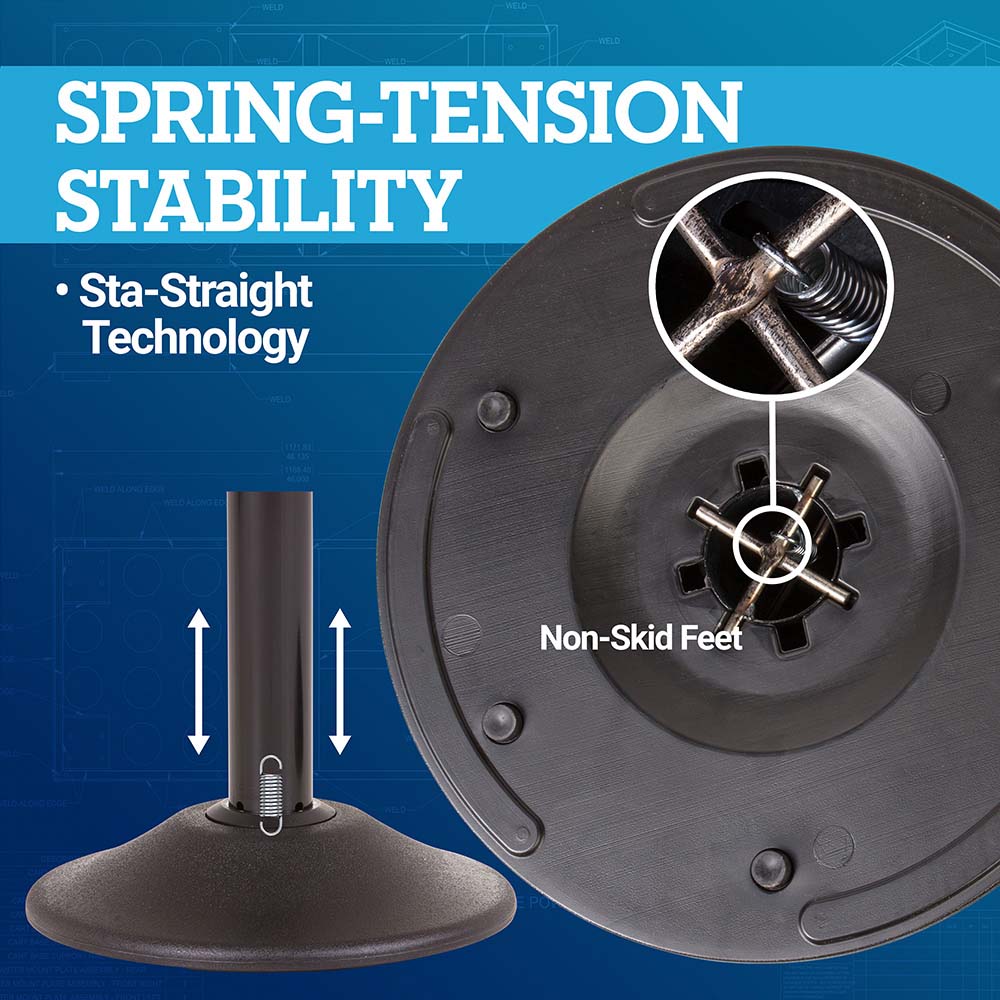 Made in the United States, the 38.5-inch tall steel post features a Sherwin Williams Pro coat finish. Unlike other stanchions that begin to wobble over time and require endless repair, the US Weight Premium Stanchion will never lean or require maintenance due to our patented Sta-Straight Technology. Designed with four points of contact under continuous tension plus a high-strength compression collar, this spring-tension system keeps the post upright even after extended use.