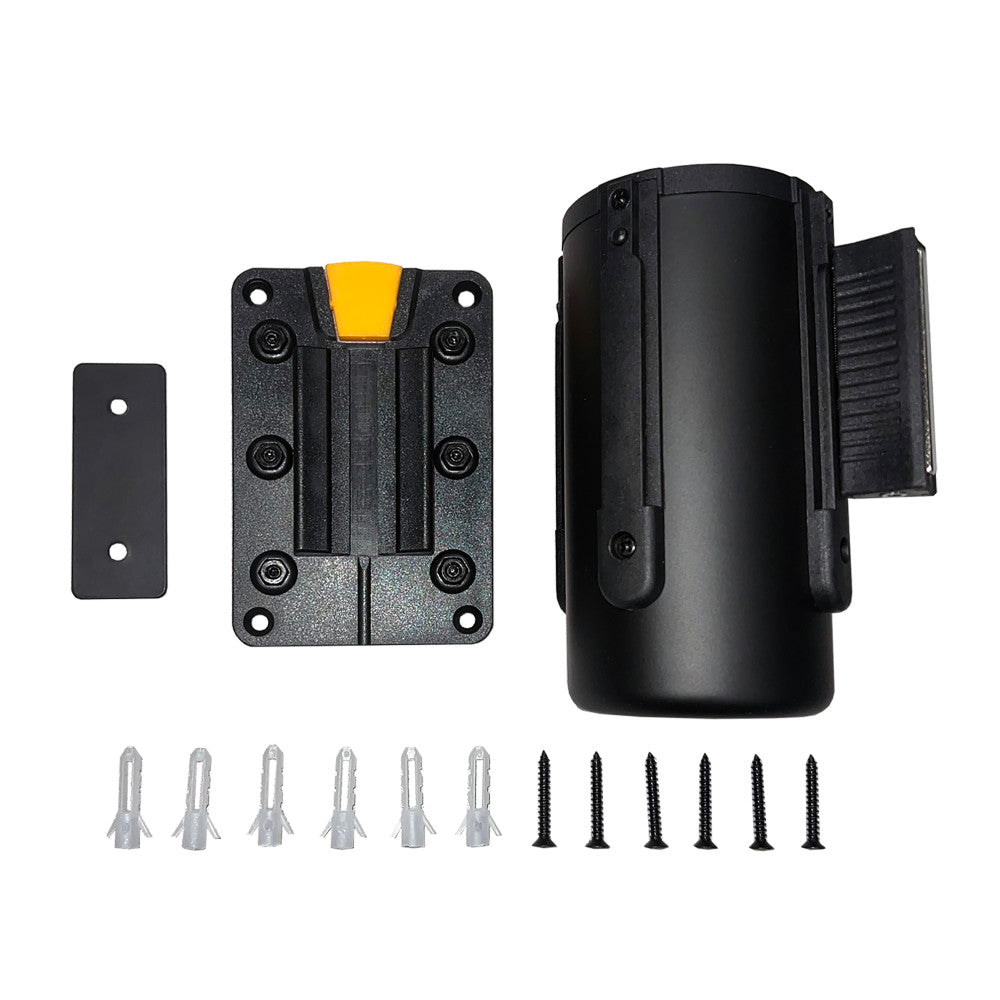 Quickly close off areas with the US Weight Magnetic Wall Mount with 7.5’ Black Retractable Belt. Wall mounts are the economical solution for crowd control because they do not take up floor space and are perfect for keeping unwanted traffic out. This wall mount has strong magnets on the back of the wall plate and on the back of the receiving clip. The magnets make installation simple and the mount's steel construction is incredibly durable for years of heavy use. The product also features screw holes for those looking for a more permanent solution. Features such as a belt braking system for slow and predictable belt return keep customers safe. This wall mount includes a release tab on the wall plate for the ability to remove the cassette while leaving wall plate attached to the wall. US Weight, located in Olney, Illinois, introduces an economical solution to crowd control with the Wall Mount with Retractable Belt.